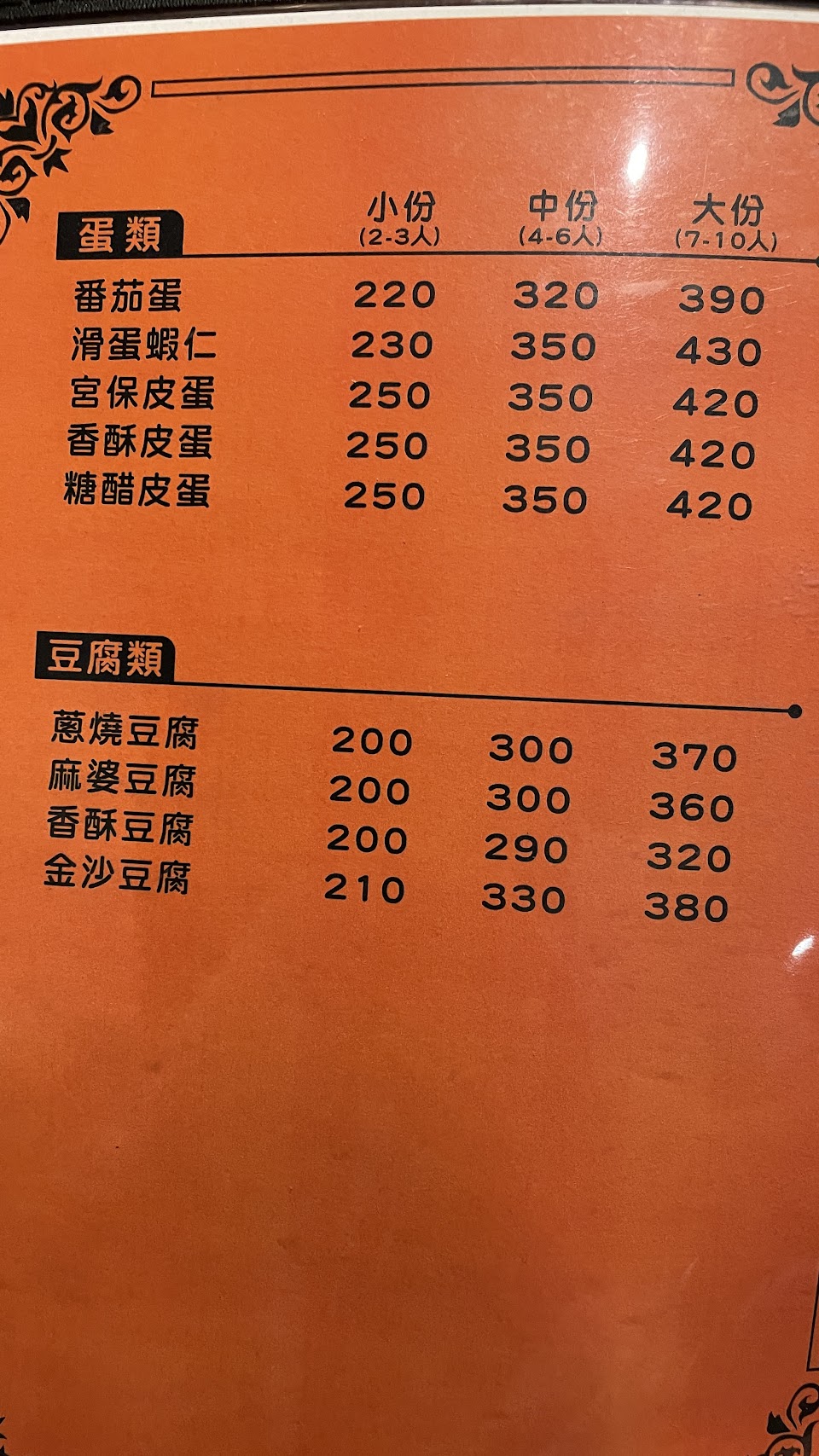 20230420偶然發現的好吃餐廳 位在市區外圍但不至偏遠 用餐環境明亮整潔 座位多為4-6人位 桌數不少但假日來可能還是要先電詢一下 菜色選擇豐富 並提供大小份選擇 口味上符合大眾喜好 宮保皮蛋好吃但真的很辣 自認抗性沒特別強的要慎選 不然菊花等著辣整天 附停車場約能停10餘輛車