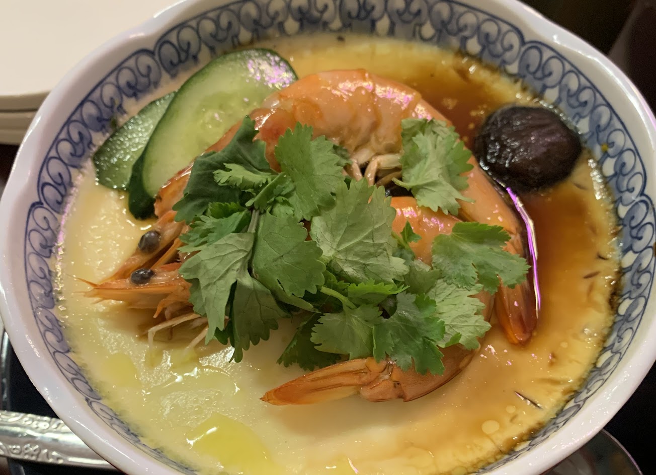 這是一間有復古風特色的家庭餐廳,聽了服務人員的推薦,點了桂花蝦,非常的不錯,還有越南鹹楊桃湯也很好喝。店內有兒童椅,樓梯有點陡,老人或兒童需留意