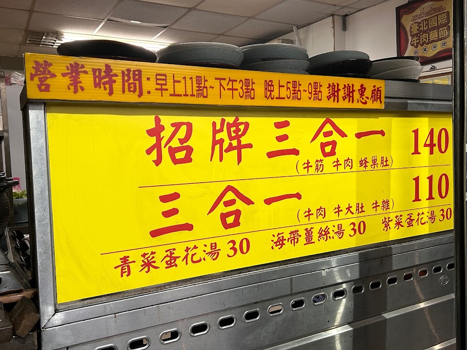 蜂巢肚 牛筋 牛肉 鹵的都很道地(分鍋處理的很好)這點也是難得(完爆滿馬路的台式紅燒牛肉麵)湯頭略清淡 但是很規矩 沒加一堆亂七八糟的玩意