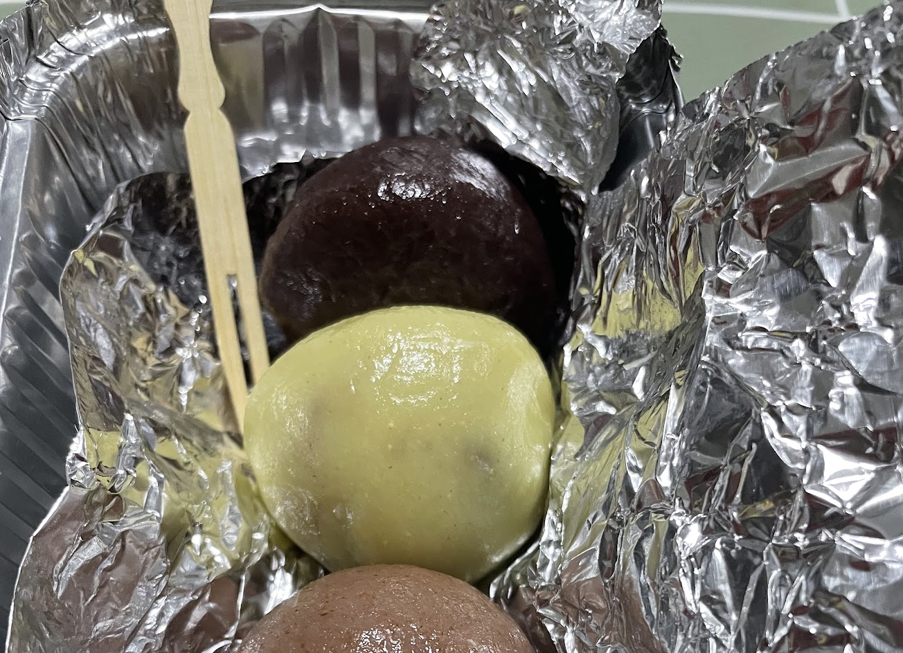 特別的麻糬皮,內餡花生微顆粒,紅豆綿密不甜…