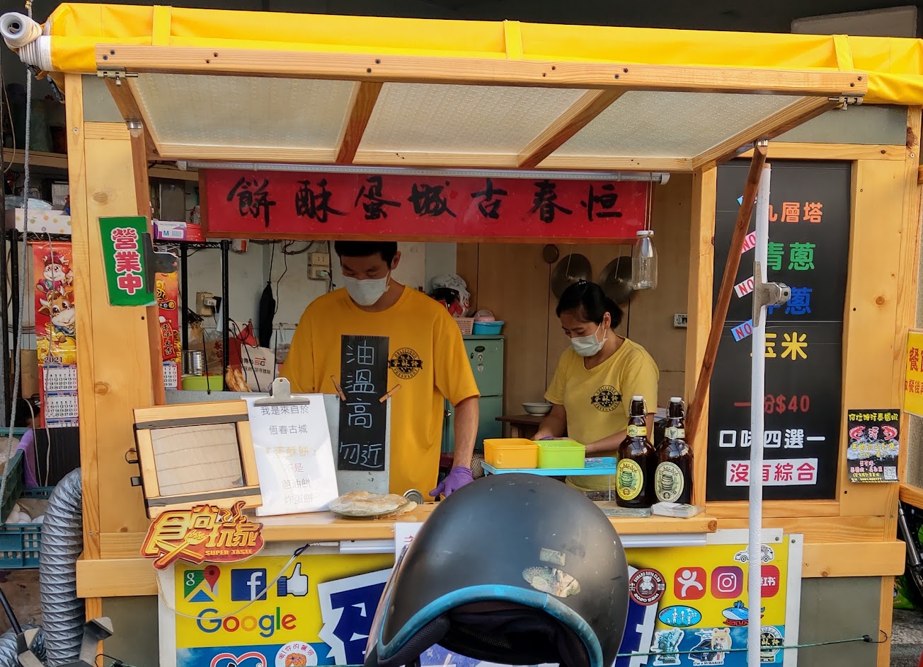蛋酥餅很酥脆很好吃,個人很喜歡玉米口味,現做需要等待。老闆幽默、東西好吃,來恆春很推薦這間。