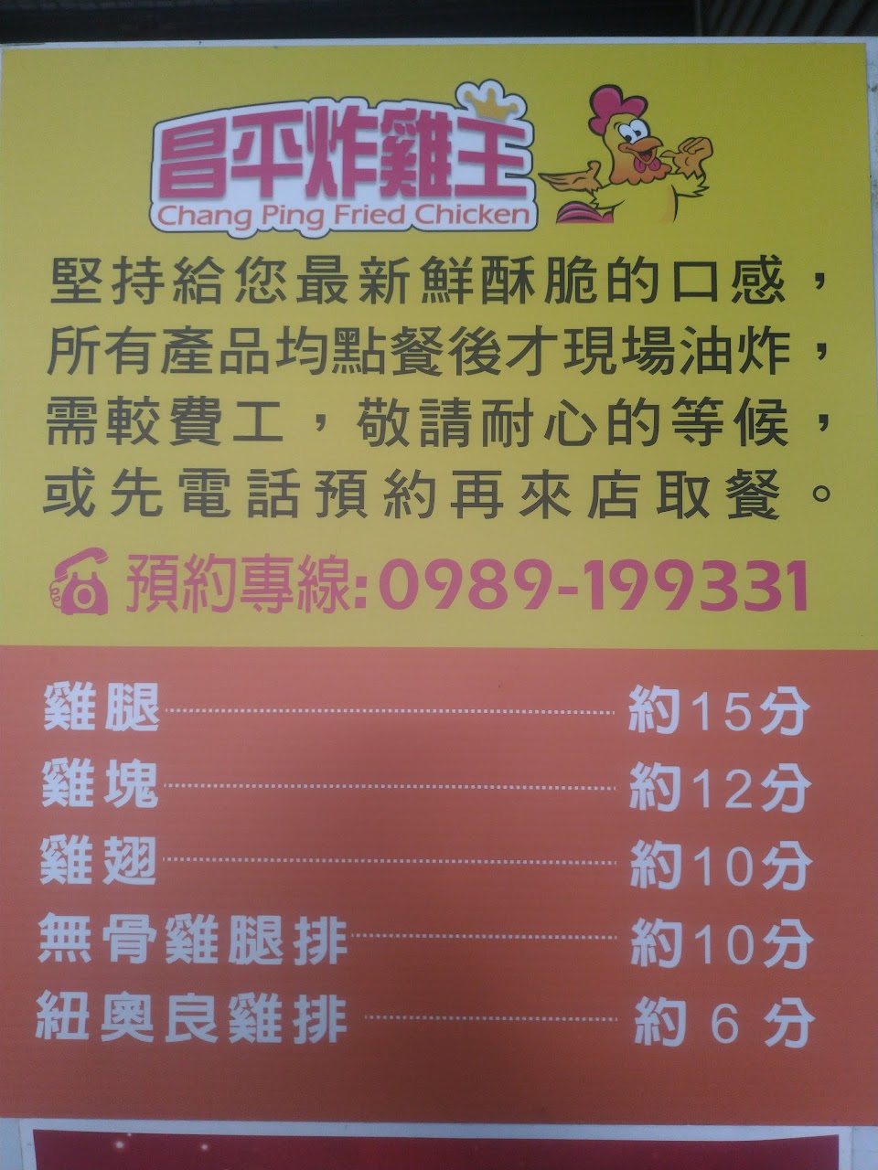 炸雞現炸15分鐘,可以打電話預約很方便。
