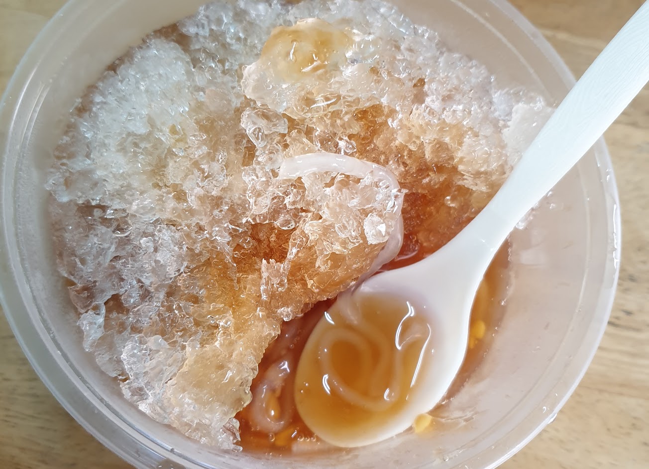 跟別家不同的是?柯記的綠豆蒜帶點淡淡的龍眼香氣,不會太甜,給料有比別家稍多,冰冰涼涼的綠豆蒜吃起來很消暑