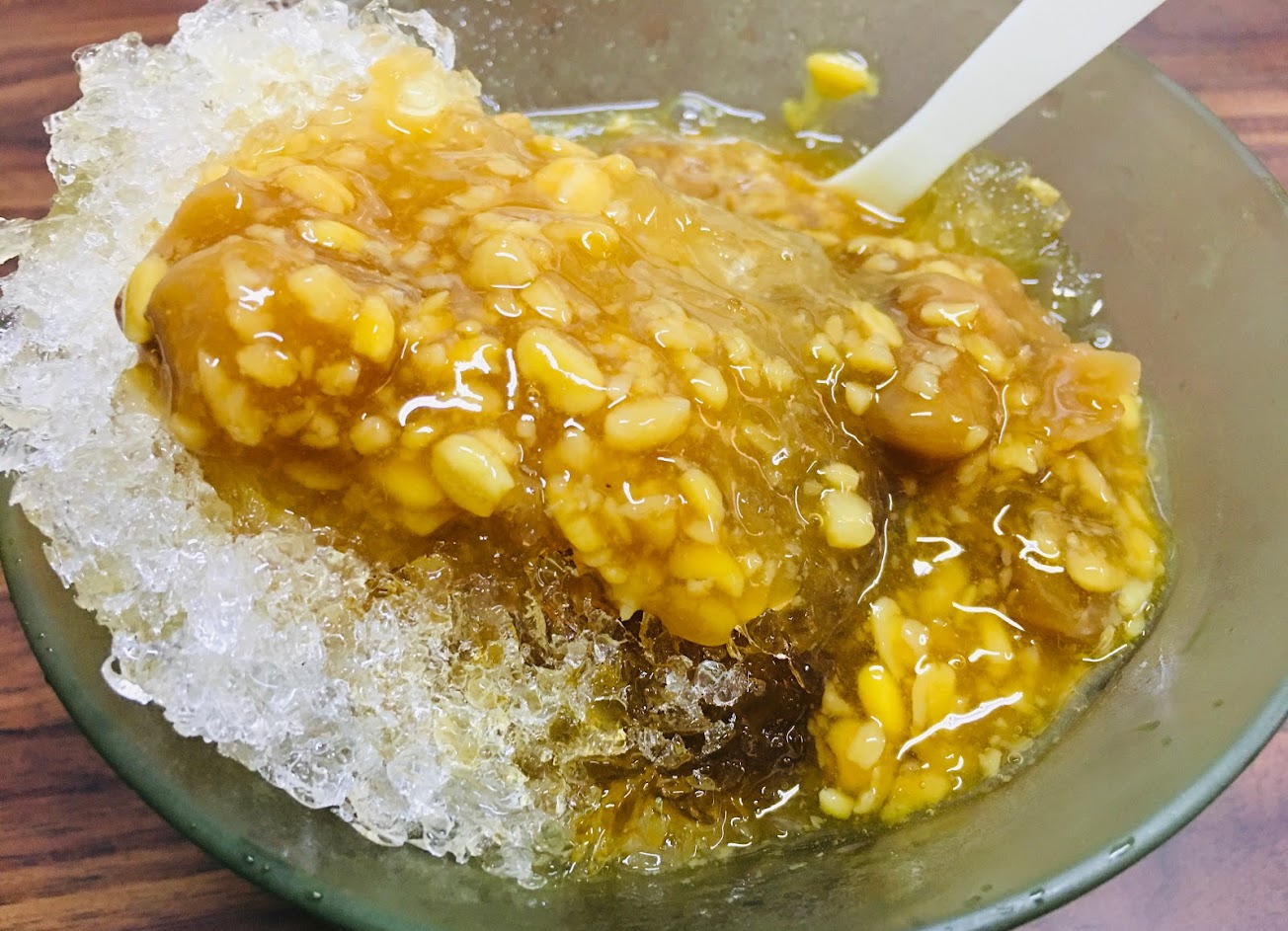 屏東當地常見美食小吃,很另類的冰品,綠豆蒜的口感類似「變小變軟」的花生粒!