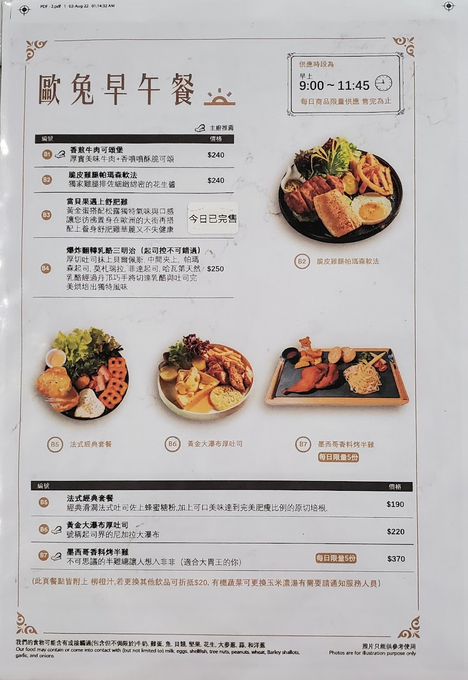 有早午餐的店。 服務 內用 餐點類型 午餐 平均每人消費金額 $200-400 餐點:5 服務:5 氣氛:5