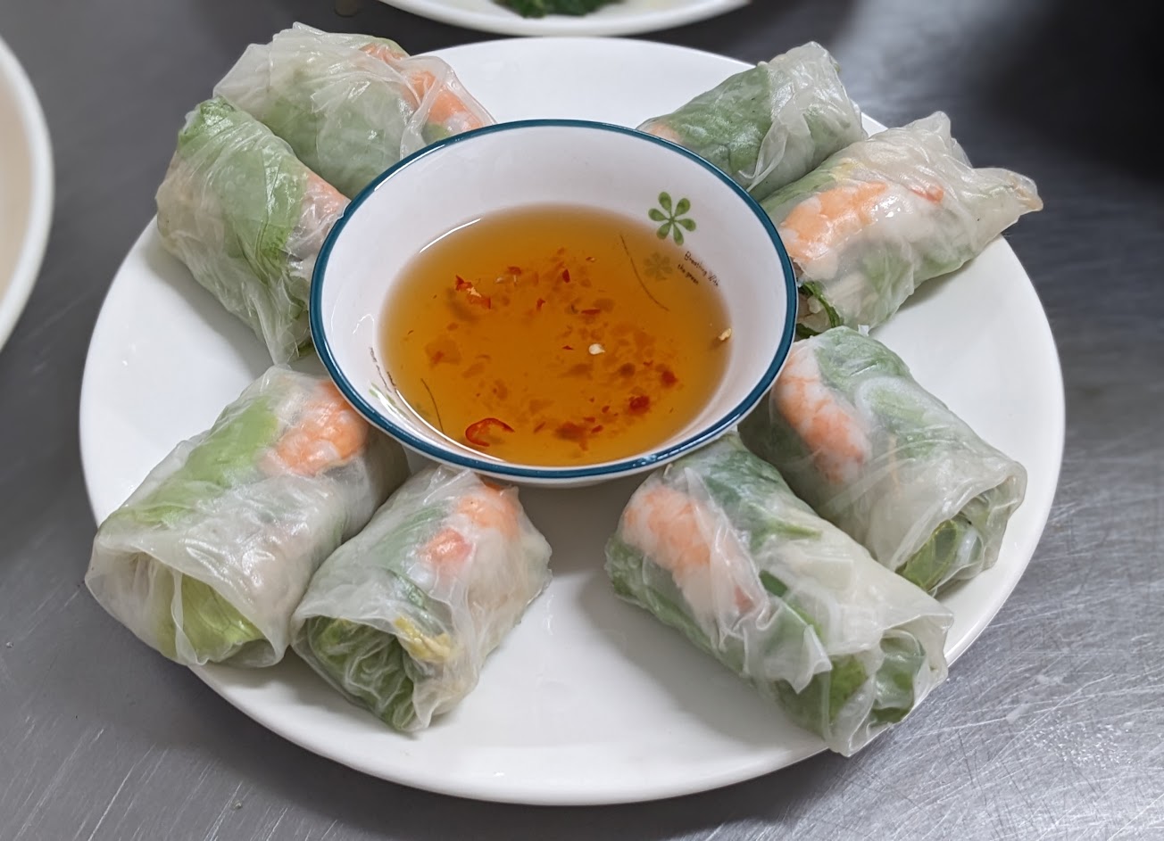 生春捲蠻便宜的,是平價美食,但是裡面的水煮豬肉有點老,建議可以在水煮的時候在水裡放一點醋,可以保持豬肉的軟嫩口感。