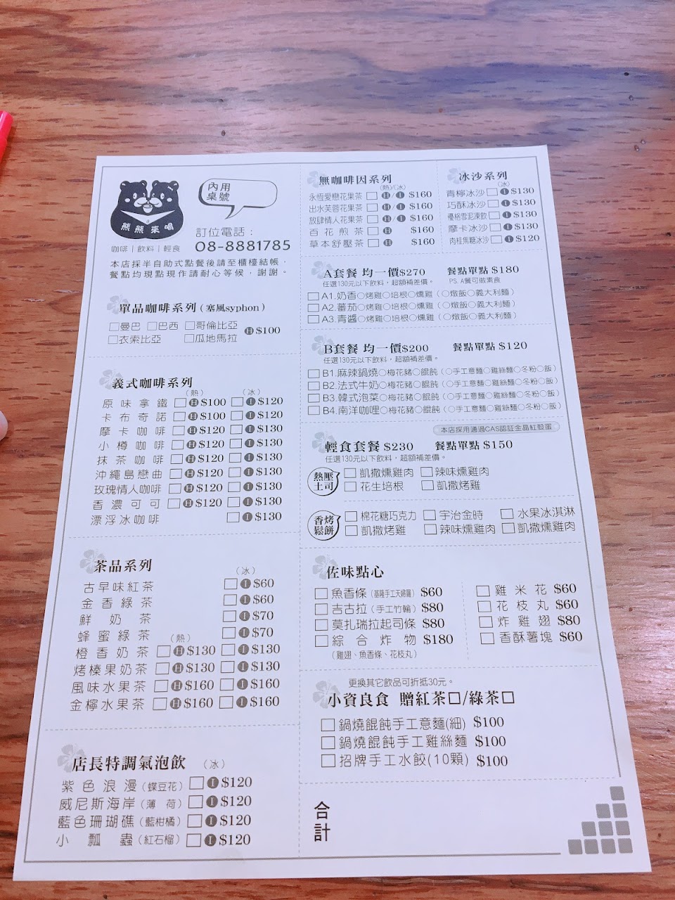 2024最新在地推薦餐廳的菜單_熊熊來喝咖啡飲料輕食的菜單、圖片