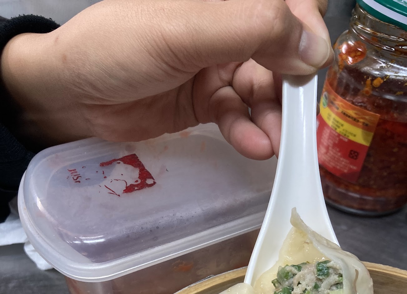 蒸餃一籠8顆70元,大小來說是真的滿大的,咬下去會稍微爆汁,肉很好吃,不會有那種冷凍肉的味道,羹好喝,但討厭味精的人不宜點,翻桌率很快,桌上有朝天椒辣椒,自己沒有特別愛吃辣沒有用,但是看起來非常搶手,喜歡吃辣的人可以試試!