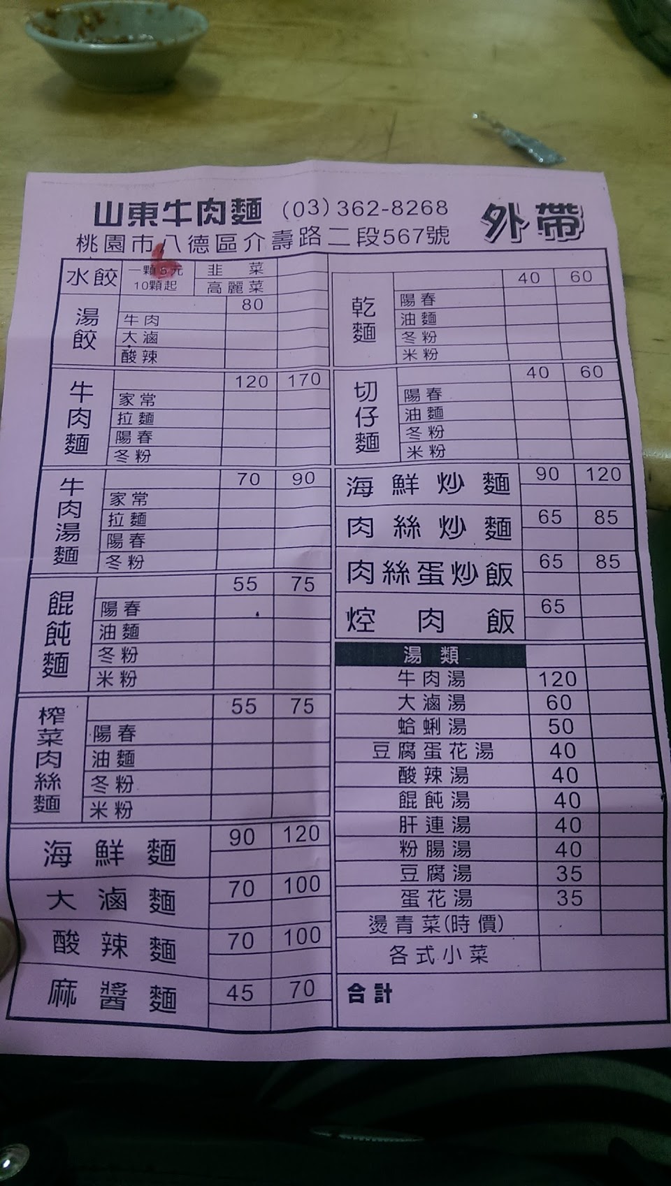 2024最新在地推薦餐廳的菜單_山東牛肉麵的菜單、圖片