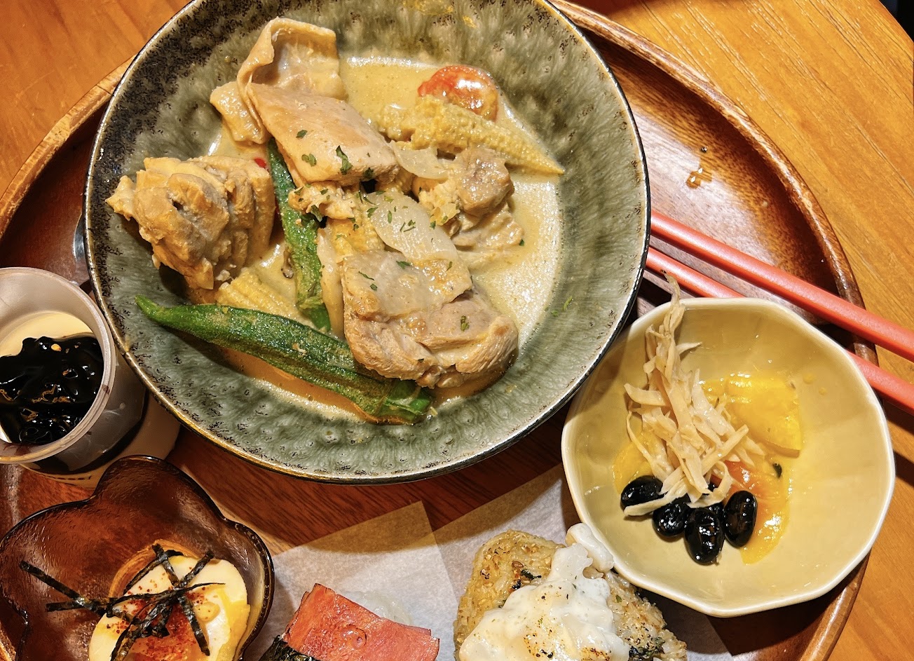 好的吃的綠咖喱餐點,搭配各類口味飯糰一起吃,永遠都不會膩,真的太享受啦?