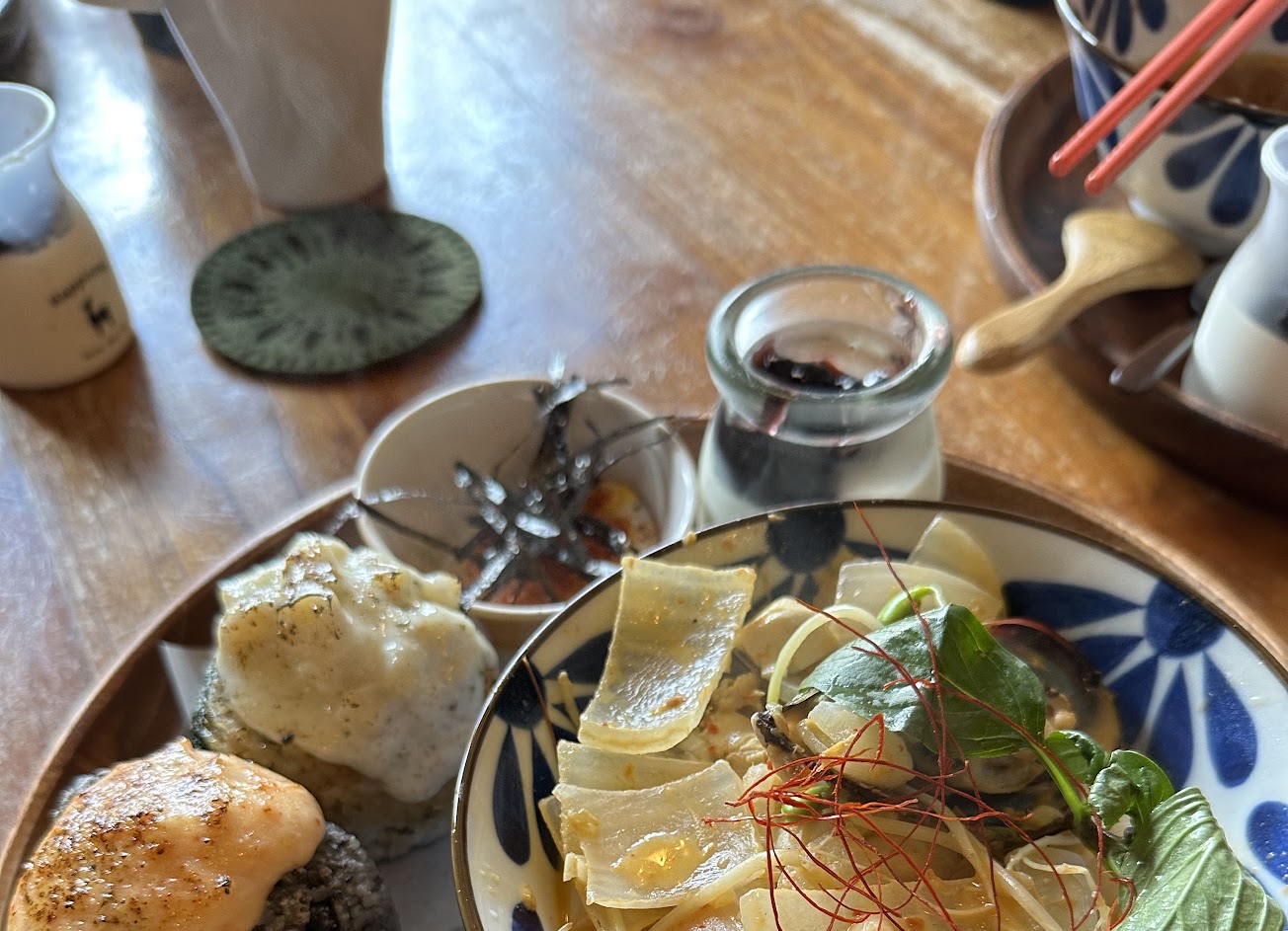 3/30(三) 點了私房醬燒五花豬$290元/叻沙百味海鮮$310元,本來要點南洋綠咖哩燉雞,但售完了><…飯團皆五選二,所以選了4個飯糰,香煎培根/鮪魚香鬆/明太子沙拉黑豆/涼拌海鮮山葵沙拉香鬆(+$10元),飯糰真的好好吃~整體覺得很特別,會想再回訪的美食,非常推薦。