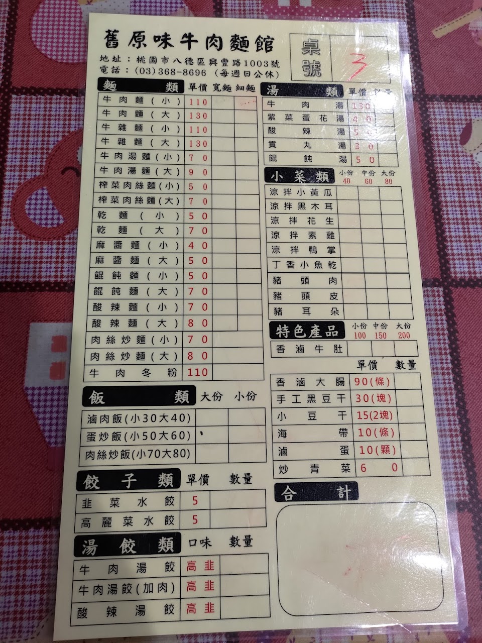 2024最新在地推薦餐廳的菜單_舊原味牛肉麵的菜單、圖片