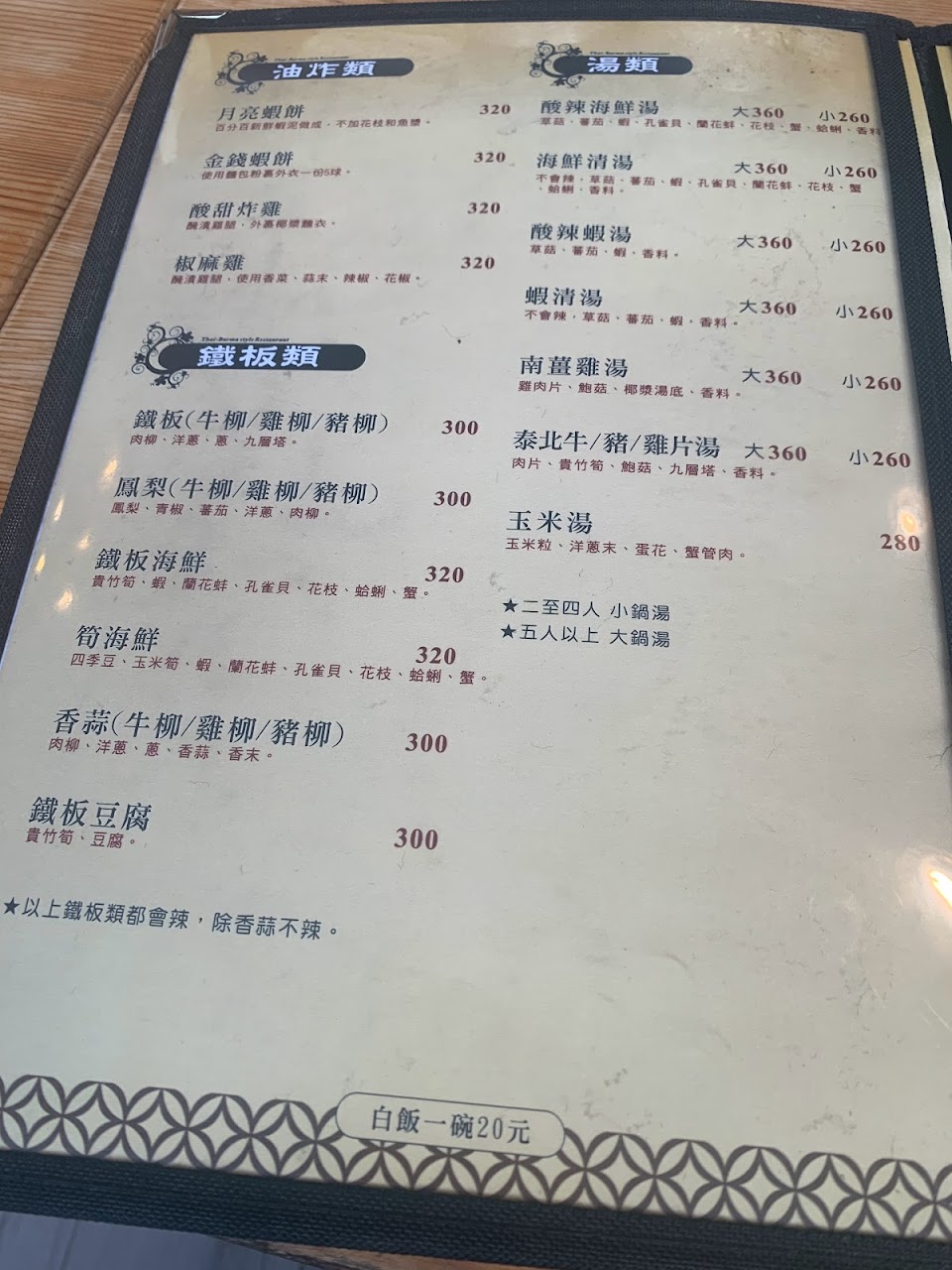 有個漂亮的小庭院 有停車場停車方便 可能太久沒吃泰式料理了 吃完沒有特別驚豔的感覺 喜歡酸酸辣辣的朋友會很愛 激推月亮蝦餅飽滿厚實很好吃⠀⠀ ⠀⠀⠀⠀⠀⠀⠀⠀⠀⠀⠀⠀ P.S. 店家不採電話訂位,需現場候位唷