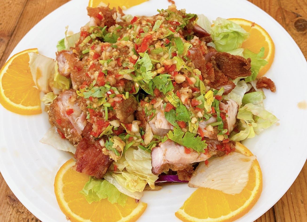 辣度都可以調整,月亮蝦餅超厚,其他椒麻雞、冬蔭功湯、涼拌海鮮、打拋豬、綠咖哩雞、蝦醬空心菜、檸檬魚等等都是經典菜色,無雷都好吃!