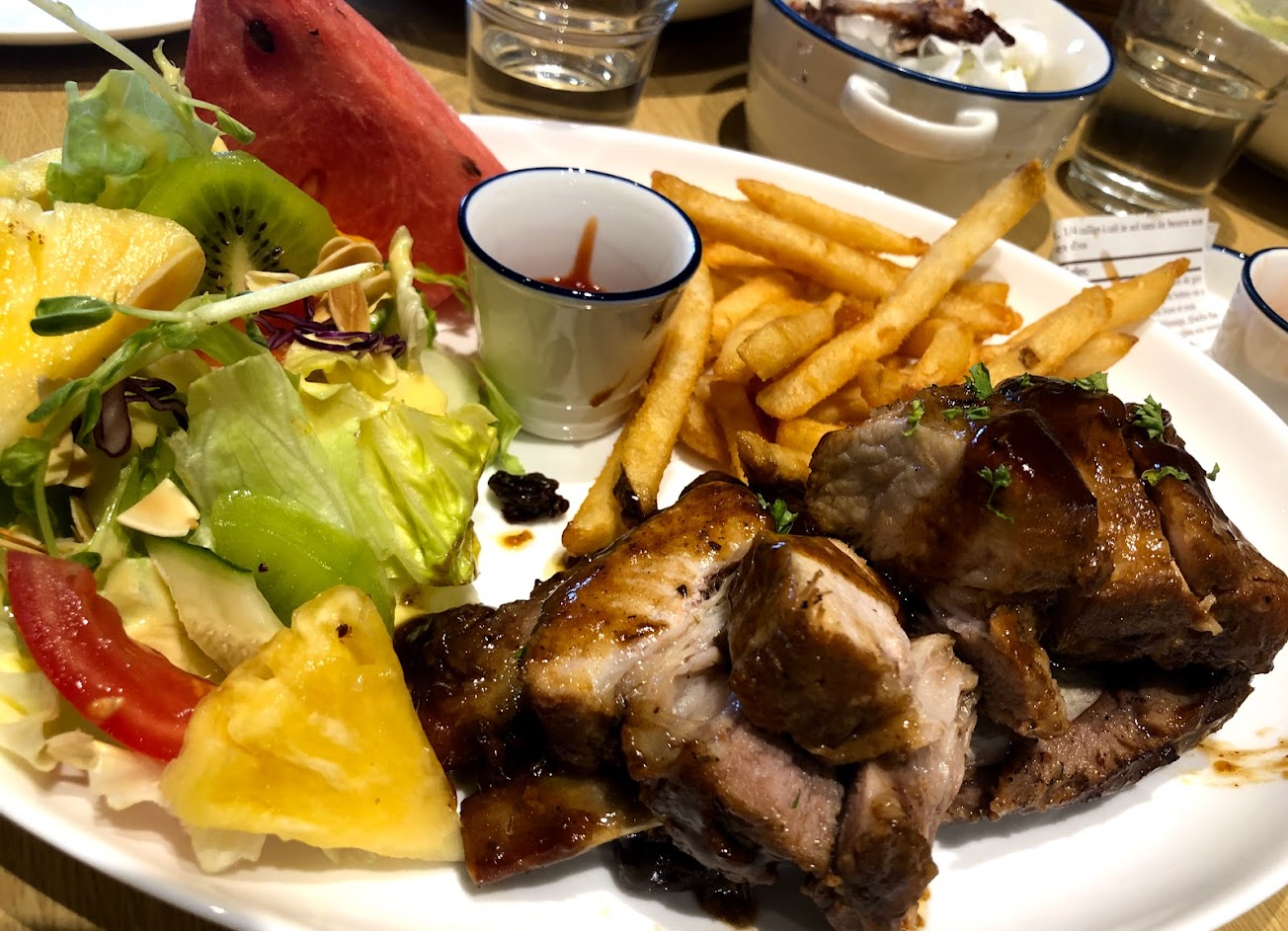墨西哥烤雞和風沙拉好吃,肉嫩沙拉新鮮水果甜美,五星推薦。酸辣雞翅要沾醬才有酸辣。豬肋排個人覺得有點材,實感可惜。