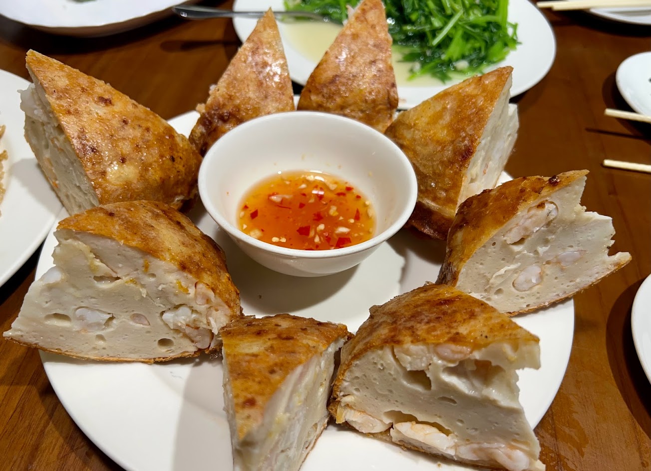 最後就是重頭戲 – 月亮蝦餅~它的厚度就跟波士頓派一樣!所以我都叫它「波士頓派月亮蝦餅」,裡面含有非常多的蝦肉,讓你每一口一定都可以品嚐到蝦子的鮮味。個人覺得這道一定是來這邊必點的一道菜