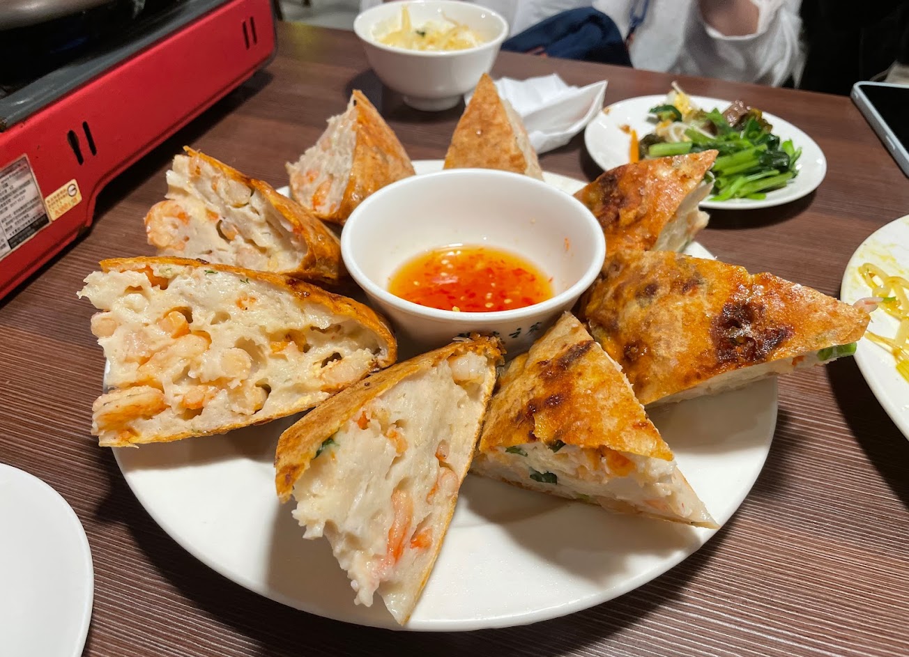 每道餐點份量都超級巨,口味也在水準之上✨ 1.月亮蝦餅:這道真的必點,雖然菜單上寫要30分鐘,其實大概10分鐘內阿姨就做出來XD蝦餅超厚,吃的到整隻蝦仁讚死! 2.海鮮炒飯:是傳統的醬油炒飯,飯炒的很香且粒粒分明,有約5隻大蝦和3塊花枝,好吃但沒有到驚艷。 3.豬肉湯河粉:豬肉給很多,應該是整塊里肌肉切片,湯頭相比一般越南河粉再酸一點,很爽口~有加香菜ㄞ注意!!XD