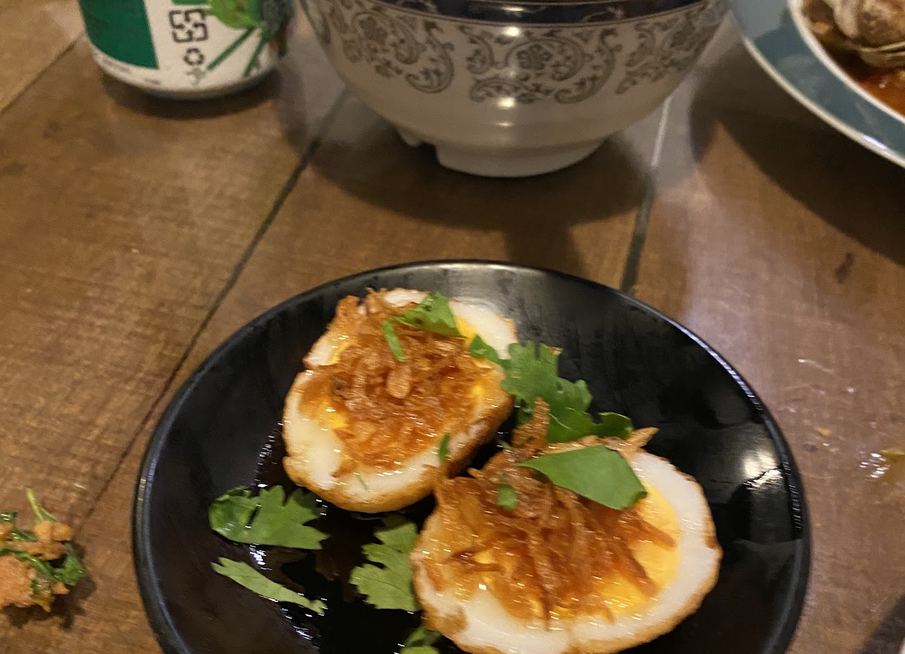 老闆娘還招待了炸蛋跟木瓜絲,炸蛋料理的很棒外層有點酥內部很軟,配飯也很剛好