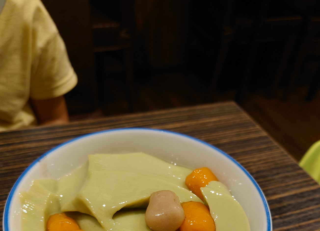 整個感覺很不錯,套餐的甜點個人覺得很棒!尤其是粉圓非常的Q而且入味,甜品只有一小杯放了一個奶油球吧!個人覺得有點甜,但是不影響整體的味覺,上餐的速度也蠻快的,(也許是店裡只有我們一桌內用,因為之前有聽小孩說客人很多要等很久😂😂😂) …