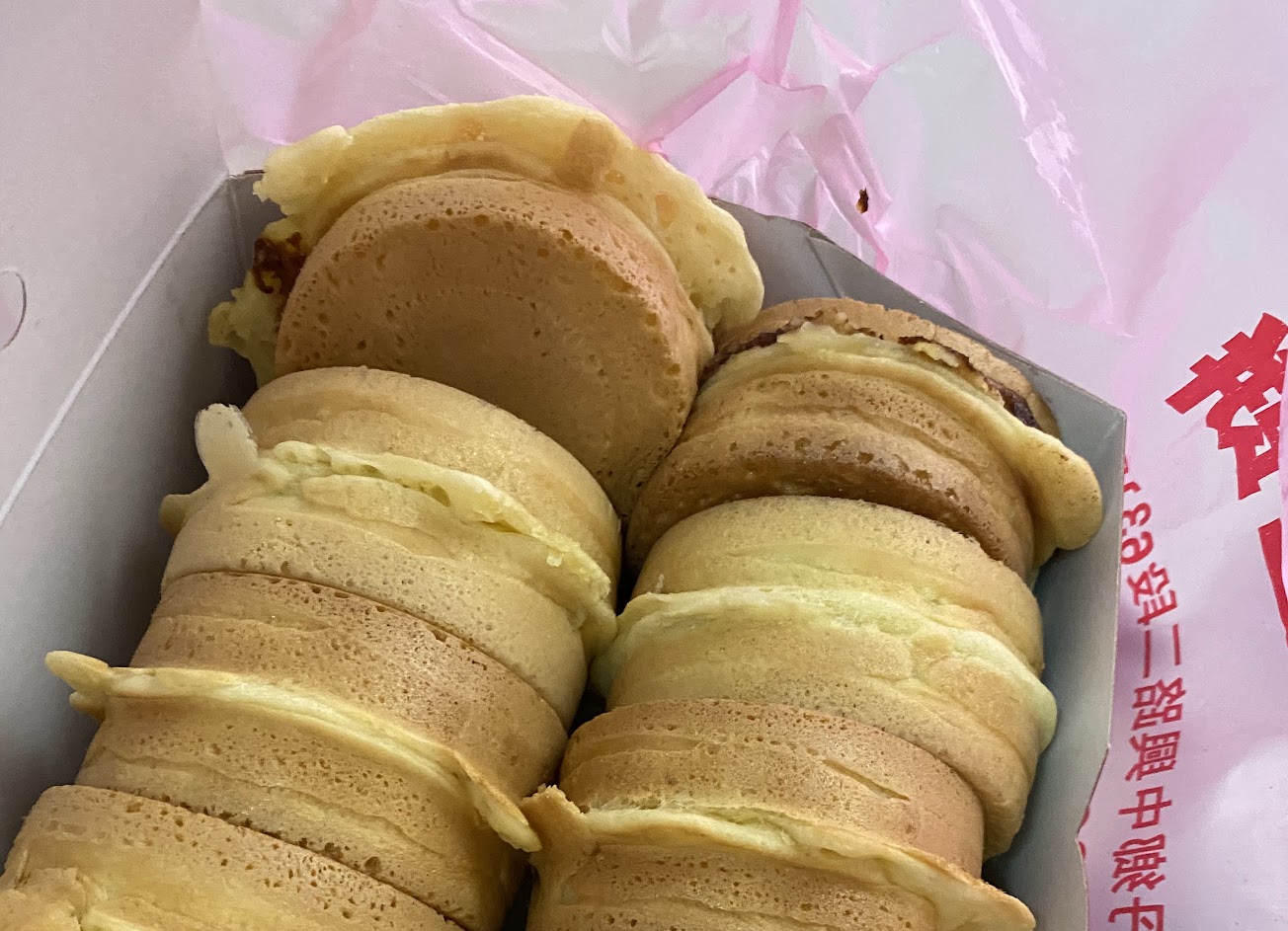 紅豆泥熬到細滑幾乎沒有顆粒感,相當甜膩而美味,芋頭也是。經典口味包括紅豆、奶油、芋頭跟芝麻花生,現在多了「紅豆奶油」口味,一個餅兩種滋味,挺不錯的。