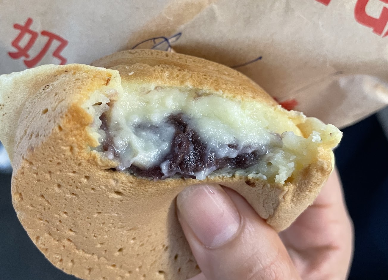 餅皮較軟,屬於吃內餡派的紅豆餅。