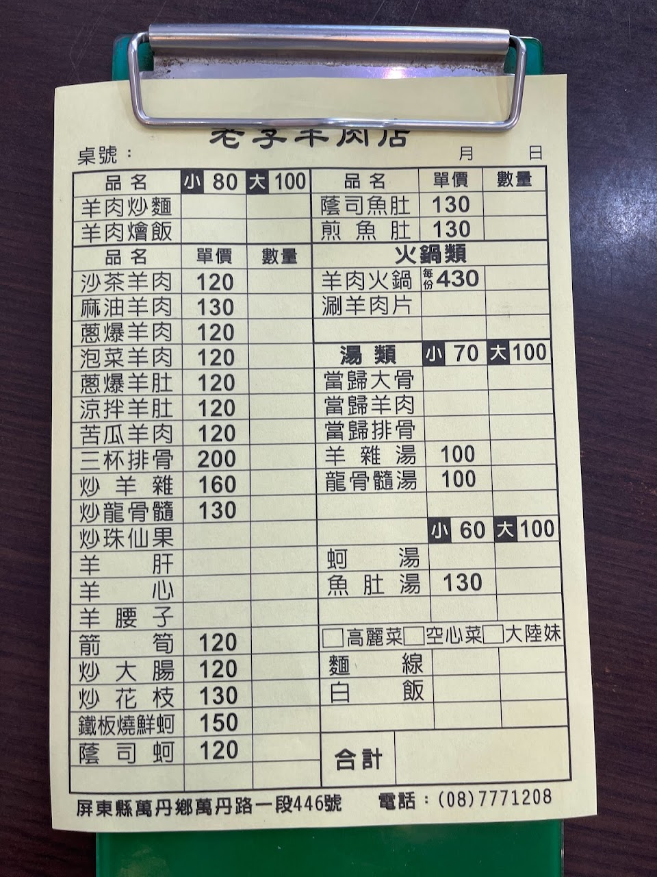 萬丹有名的羊肉料理,其實萬丹最早是羊肉較有名,是西外環開通後才逐漸變成以牛肉聞名。這間店的羊肉料理都蠻好吃的,而且價格實惠,幾個人一起吃每人只要百來元就能吃很飽了!
