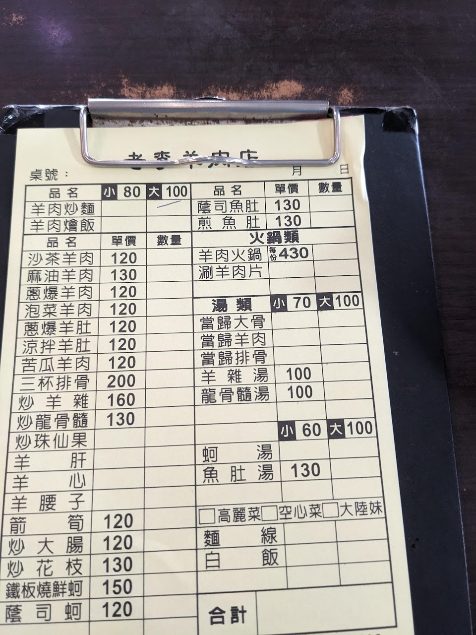 2024最新在地推薦餐廳的菜單_老李羊肉店的菜單、圖片