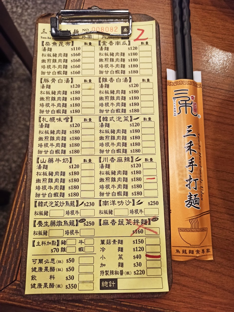 2024最新在地推薦餐廳的菜單_三禾手打麵的菜單、圖片