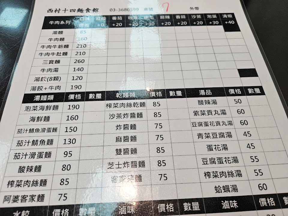 2024最新在地推薦餐廳的菜單_西村十四麵食館-牛肉麵專門店的菜單、圖片
