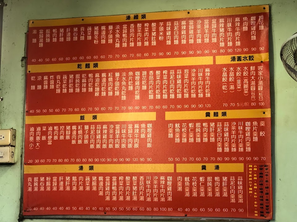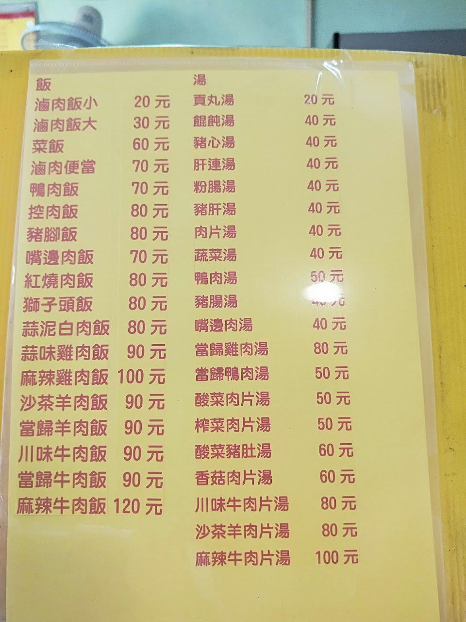 蒜泥白肉飯 90三菜一主食 cp值高,蒜泥白肉乾麵80 味道不錯,但跟飯比就沒什麼cp,川味牛肉片麵100,大辣牛肉嫩且蠻多的,下水湯50 好喝,沙茶羊肉片羹麵100 肉蠻多,整體物美價廉。