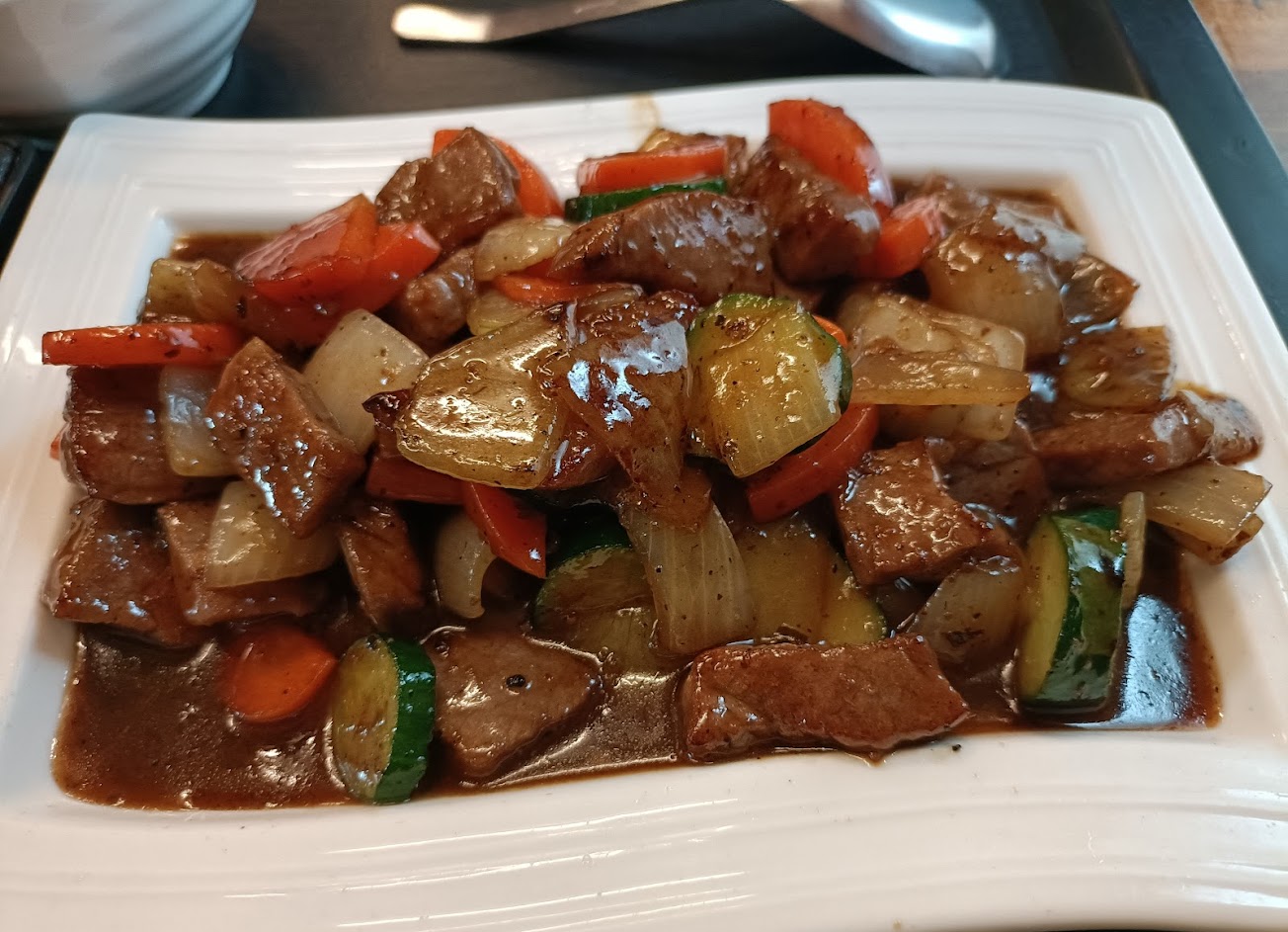 黑胡椒牛小排的牛小排是合成肉,黑胡椒醬就是市售的便宜貨味道
