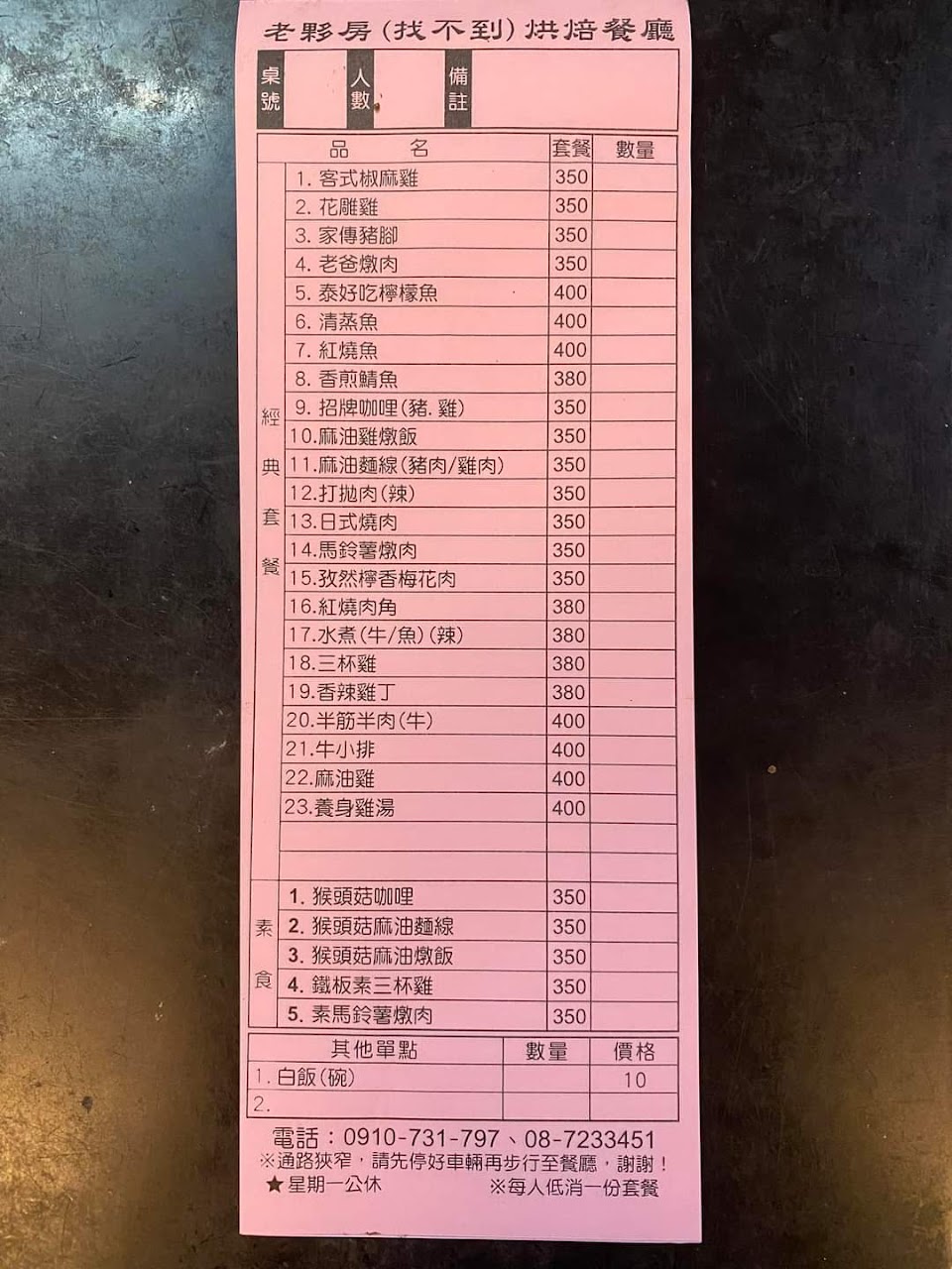?店資訊:臉書搜尋 #老夥房找不到餐坊