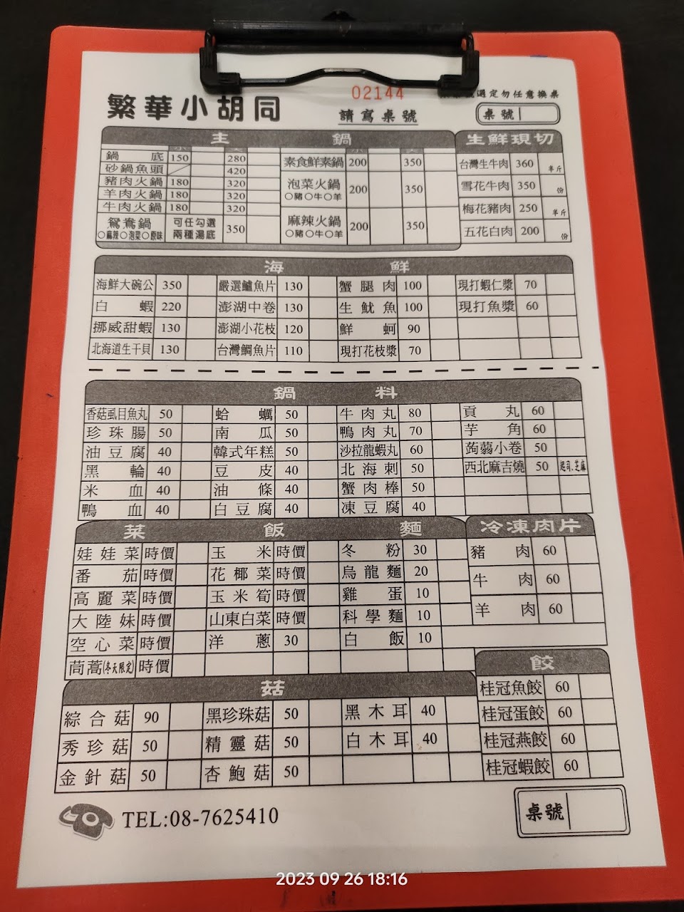 2024最新在地推薦餐廳的菜單_繁華小胡同火鍋的菜單、圖片