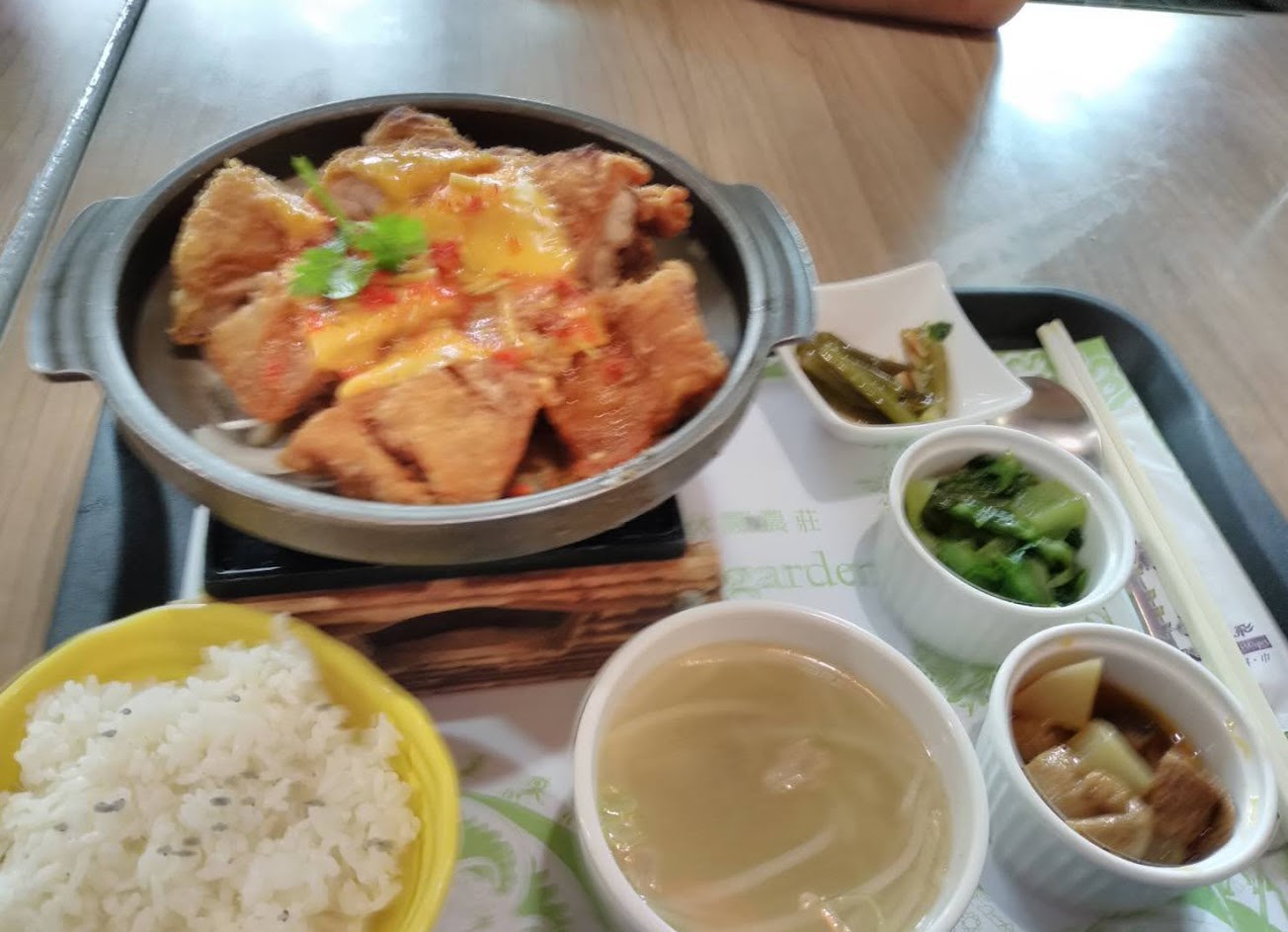 價位中高,套餐口味尚可,炒青菜和蒸蛋都冷掉了,人多時吧檯人手不足,室內用餐人多時略吵雜。