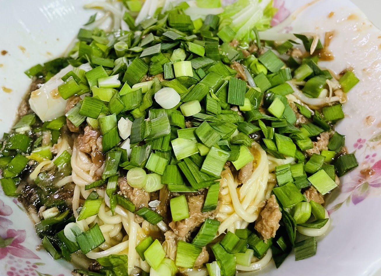 滿滿的韮菜,香噴噴的肉燥,Q彈唰嘴的麵條,好吃