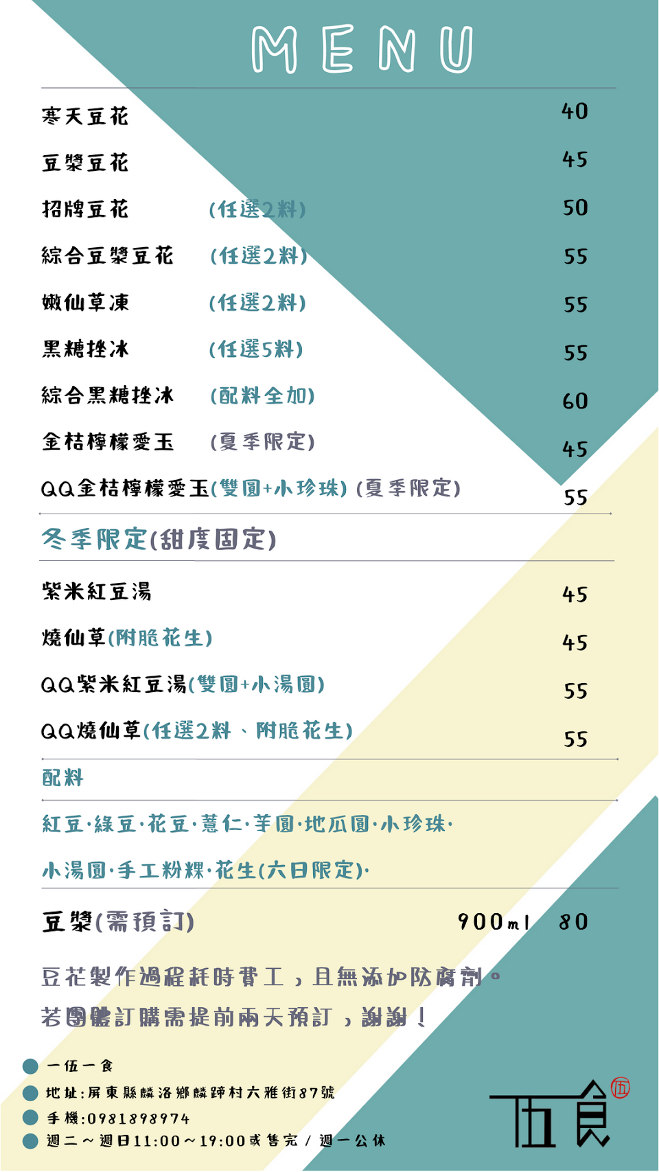 2024最新在地推薦餐廳的菜單_一伍一食的菜單、圖片