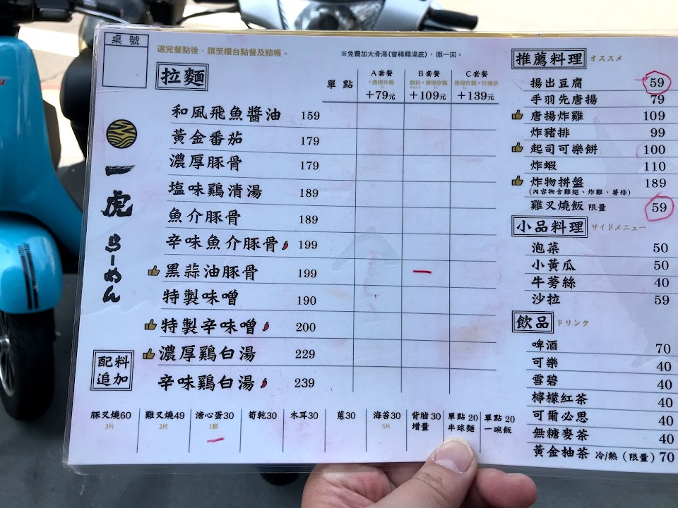 2024最新在地推薦餐廳的菜單_麵屋一虎-八德店 (不定時公休日請上fb查看)的菜單、圖片