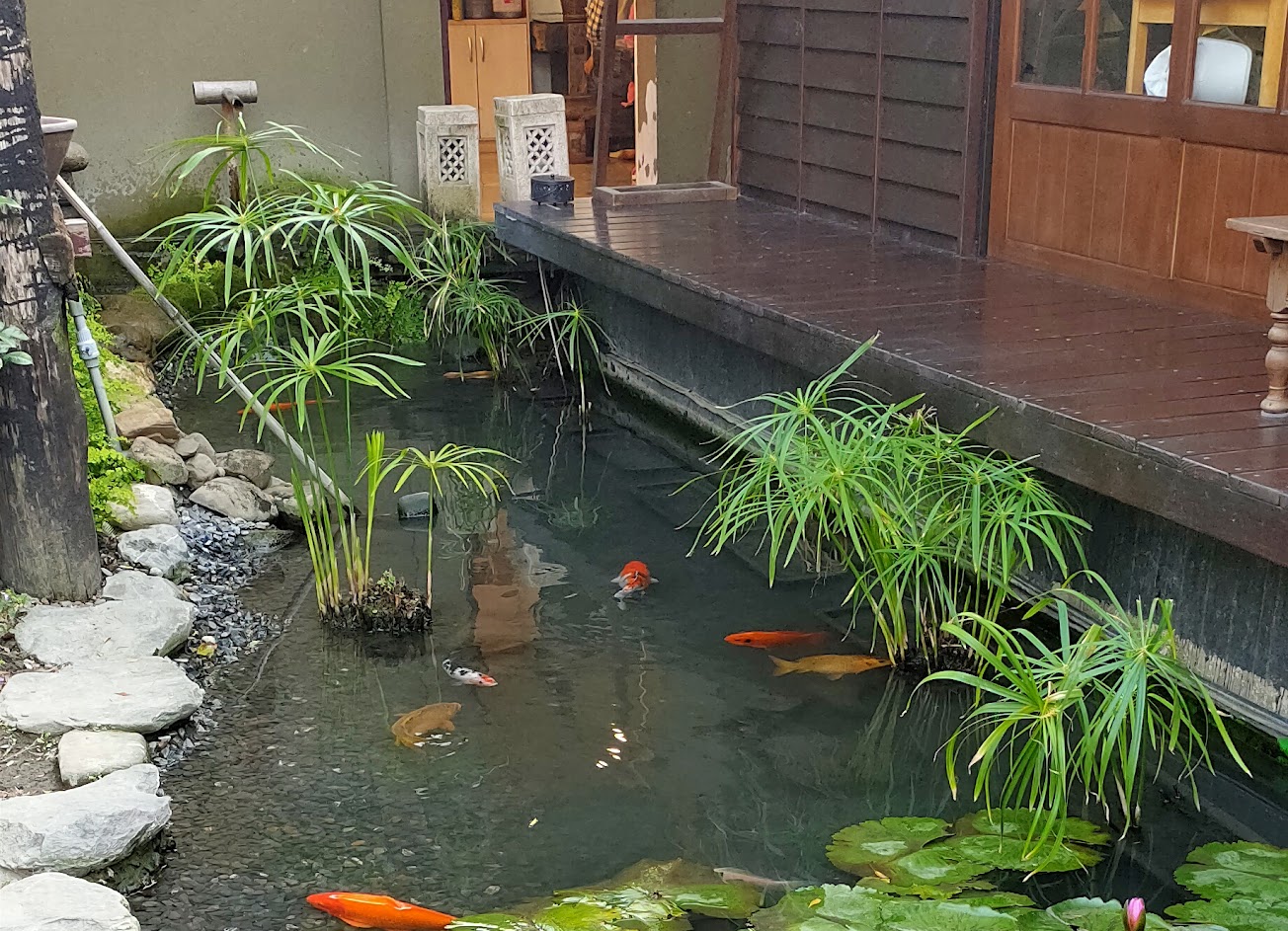 2.一進去會被印入眼簾的庭園景觀「震撼到」,滿滿的植物還有老闆貴鬆鬆的鹿角蕨,池塘裡面的錦鯉以我閱魚無數的經驗來判斷⋯嗯非常多隻就是了。