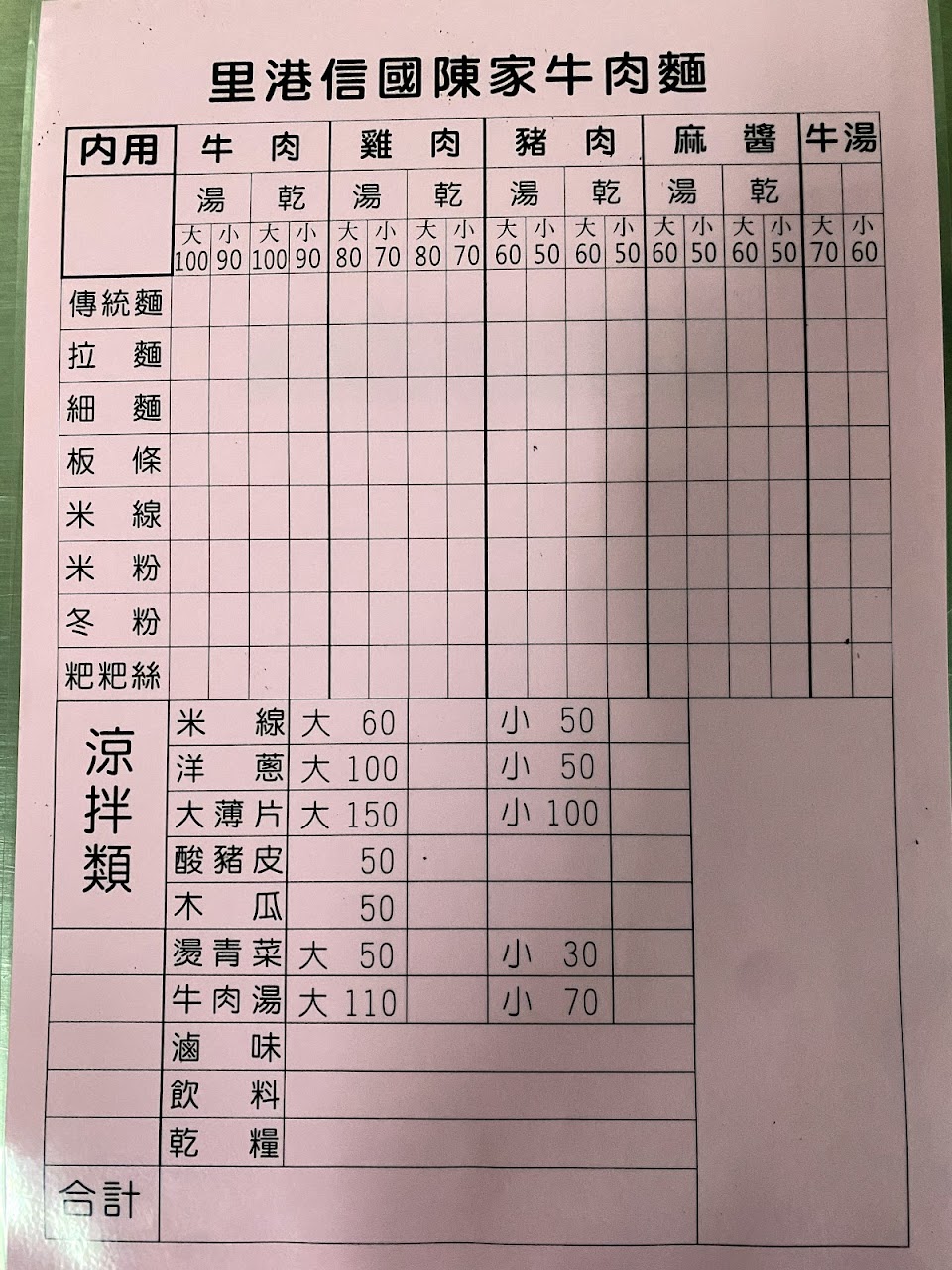 2024最新在地推薦餐廳的菜單_信國陳家牛肉麵的菜單、圖片