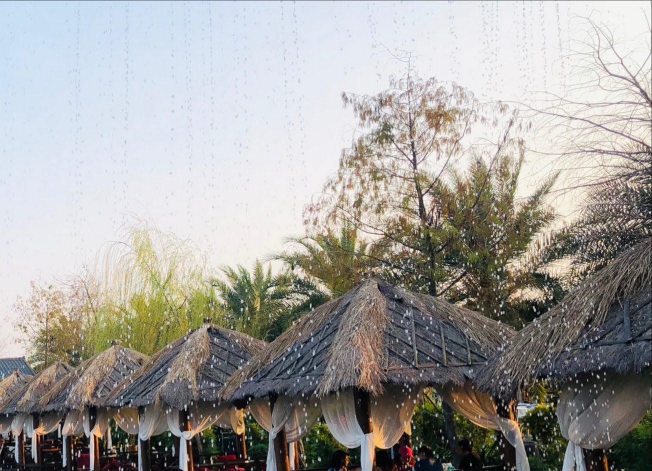 一走進水明漾活蝦景觀餐廳,立馬感受到濃濃的南洋味,一間間的發呆亭旁伴著一大池的池塘,池中蓮花朵朵,時而噴水釋放水霧,水池旁則是一整排落羽松步道,落羽松綠意盎然,瞬間感覺都慢活了,彷彿一下空間轉換來到峇里島。