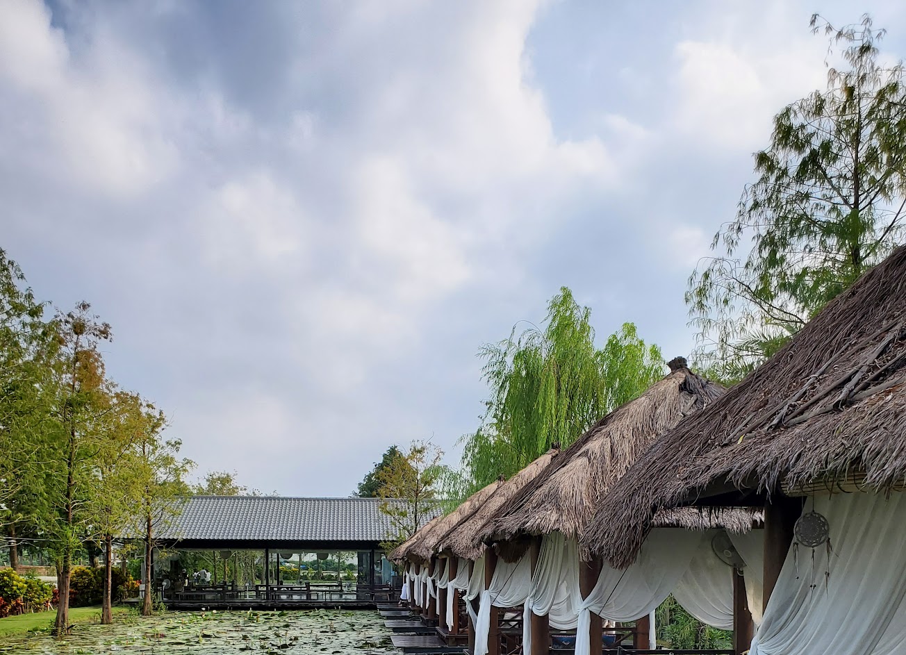 傍晚到用餐時間,正好睡蓮漫漫綻開了,音樂~涼亭~美景~美食~家人,長輩都非常滿意!