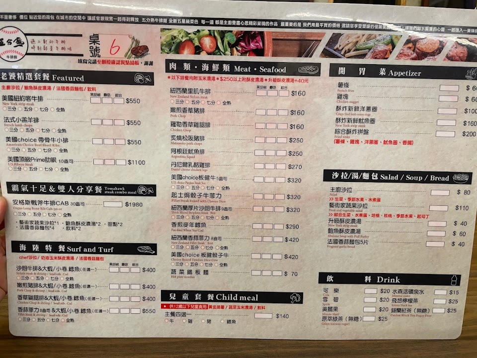 2024最新在地推薦餐廳的菜單_五分熟牛排館的菜單、圖片