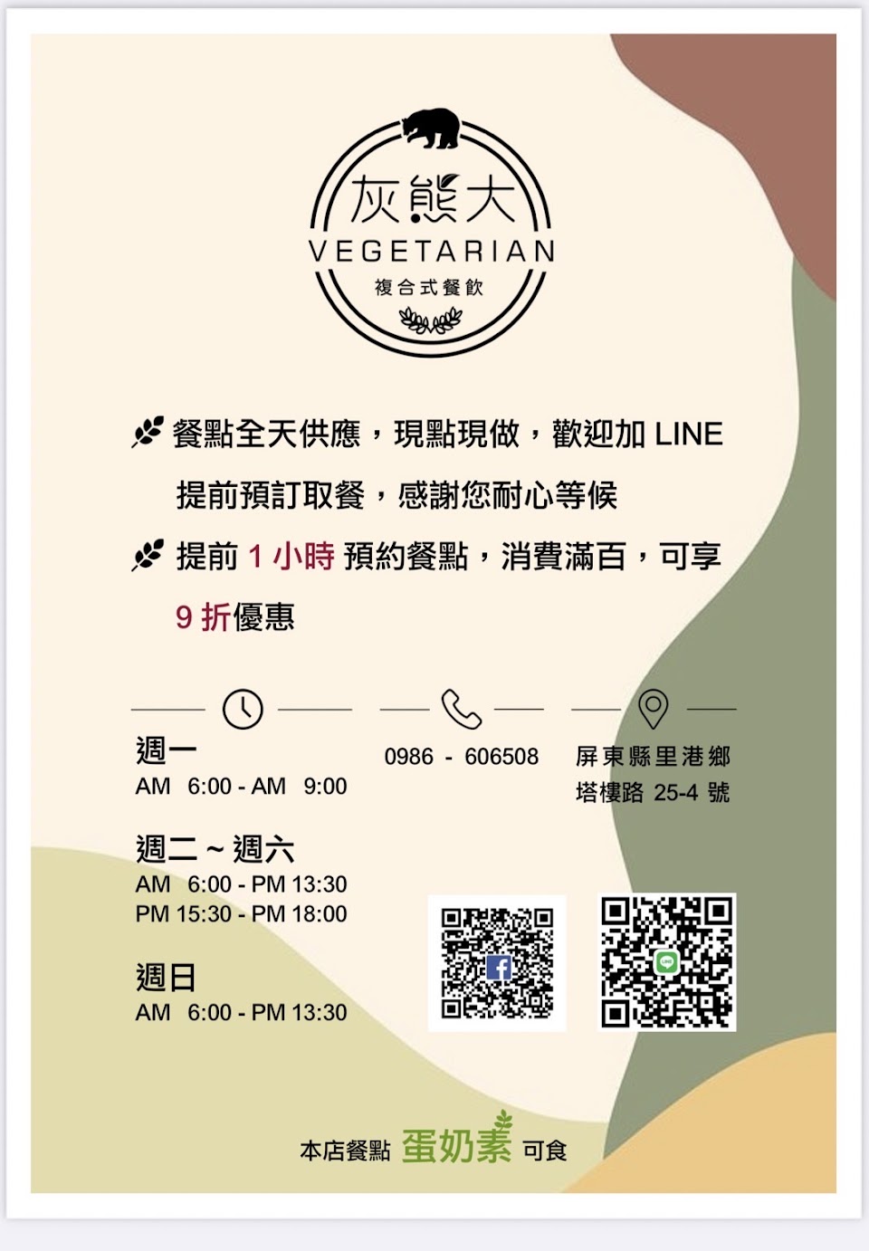 2024最新在地推薦餐廳的菜單_灰熊大複合式餐飲素食的菜單、圖片