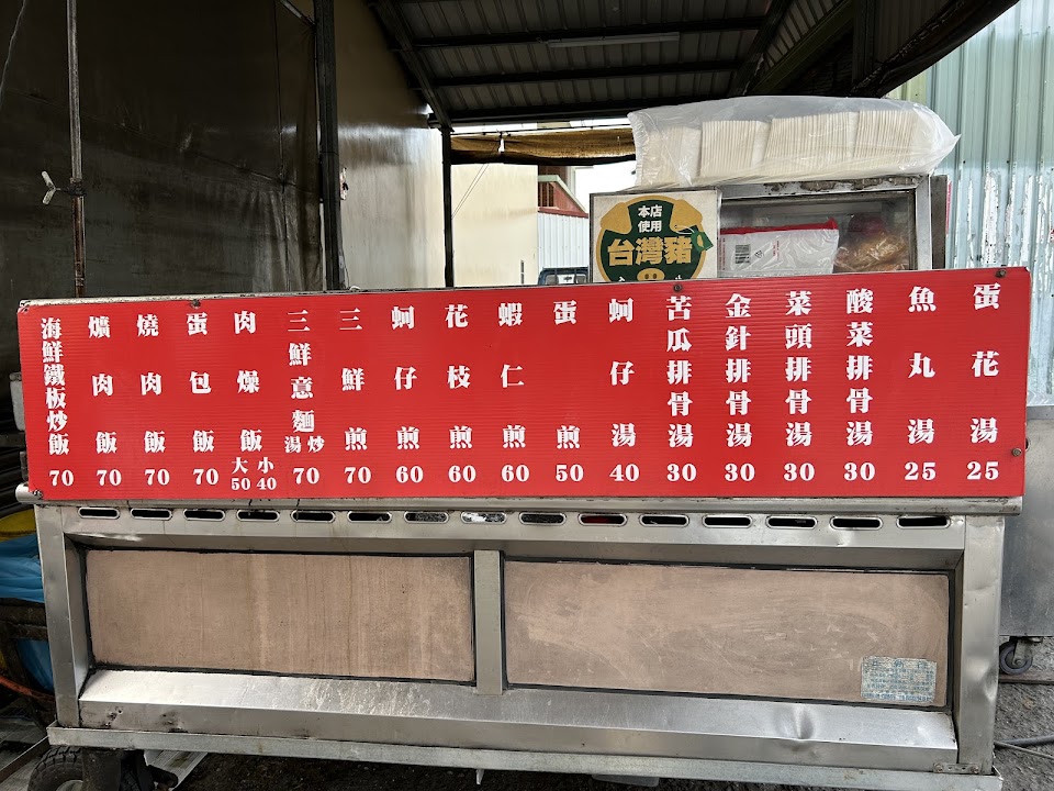 蚵仔煎、炒飯(麵)、蘿蔔(苦瓜)排骨湯,平價不錯吃。