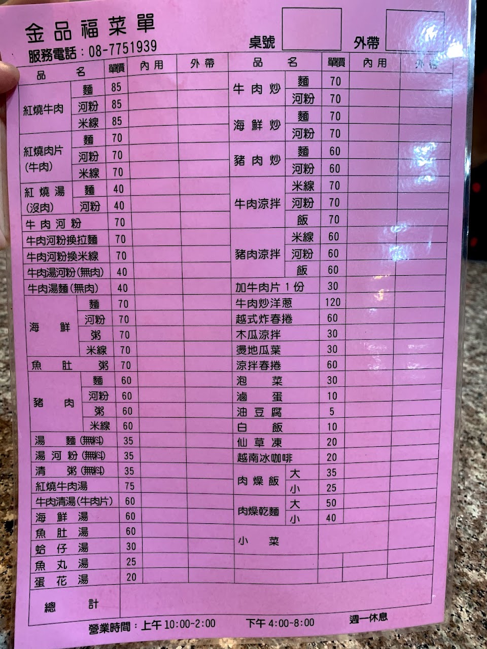 2024最新在地推薦餐廳的菜單_金品福蚵仔煎越南河粉的菜單、圖片