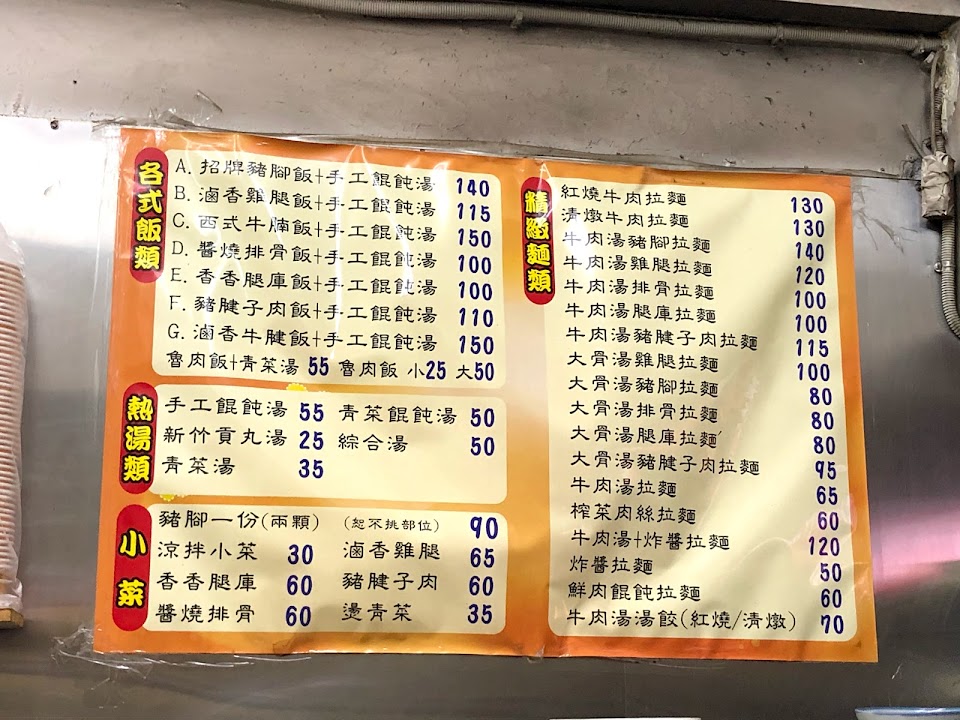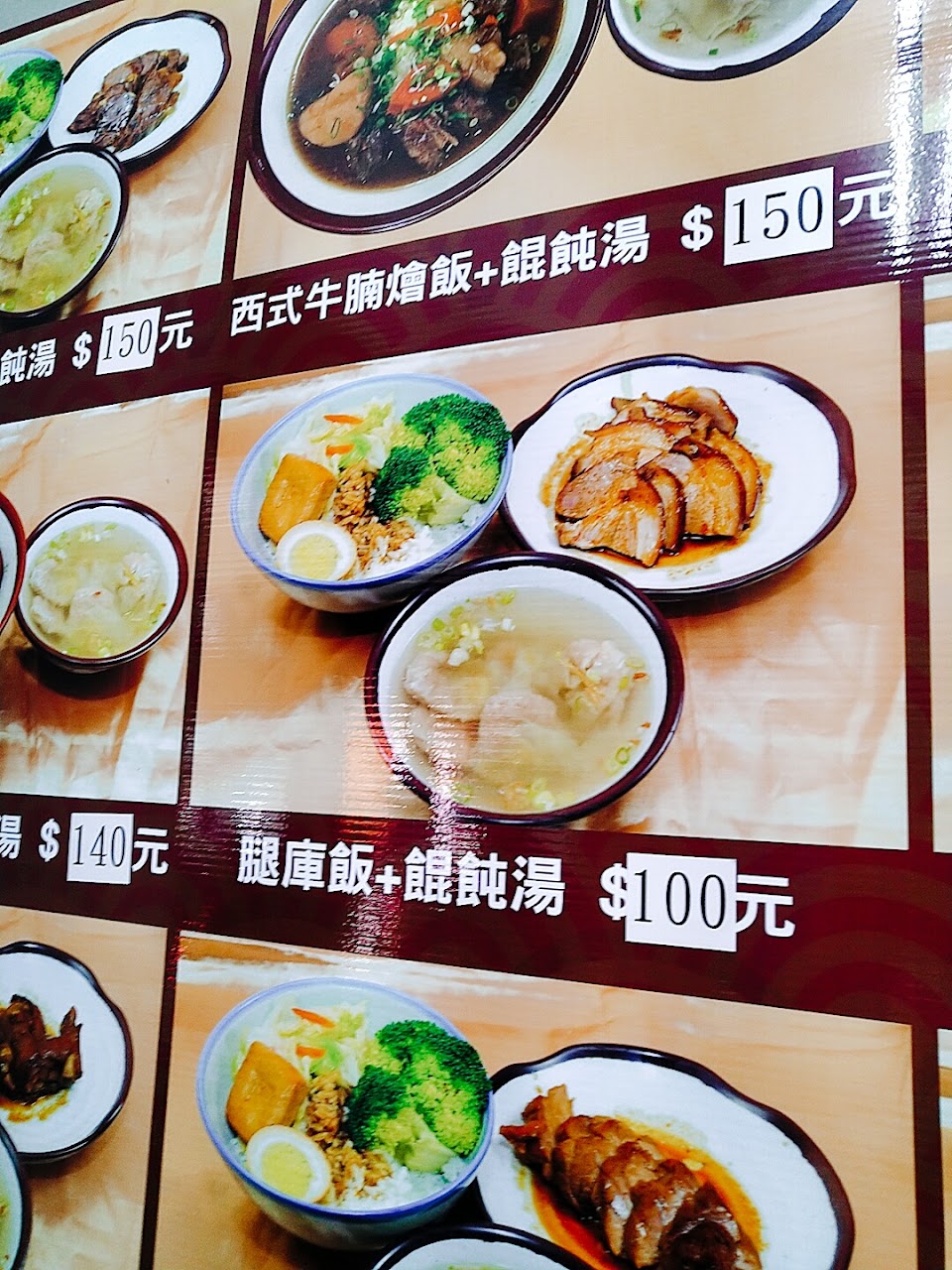 腿庫飯+餛飩湯95元、醬燒排骨飯+餛飩湯95元、豬腱肉飯+餛飩湯105元…腿庫味道不錯…肉值扎實…肥瘦適中…餛飩湯是小顆餛飩(5顆)…熟悉的油蔥湯頭…整體而言本店cp值蠻不錯的…店家也很客氣…中午用餐時間需排隊…內用可先詢問有無座位…另有紅燒、清燉牛肉麵…打算下次去嚐看看… …
