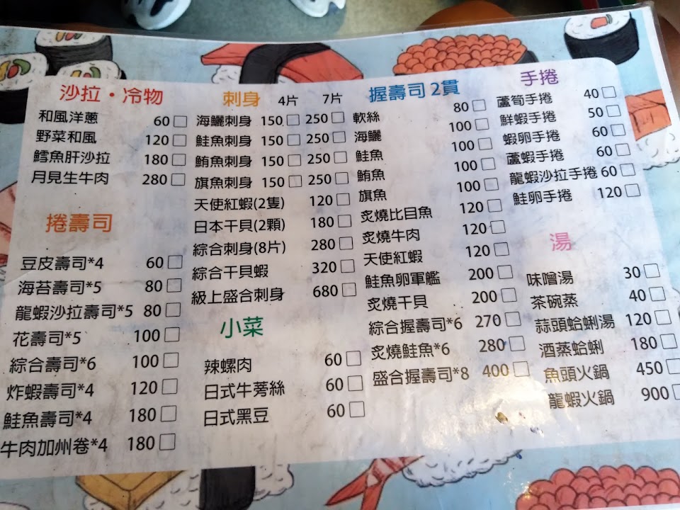 回沖多次,更新了鮭魚握壽司及炸蝦壽司,大推等炸蝦壽司,而且店員常常會招待湯或是手捲,真的很棒。