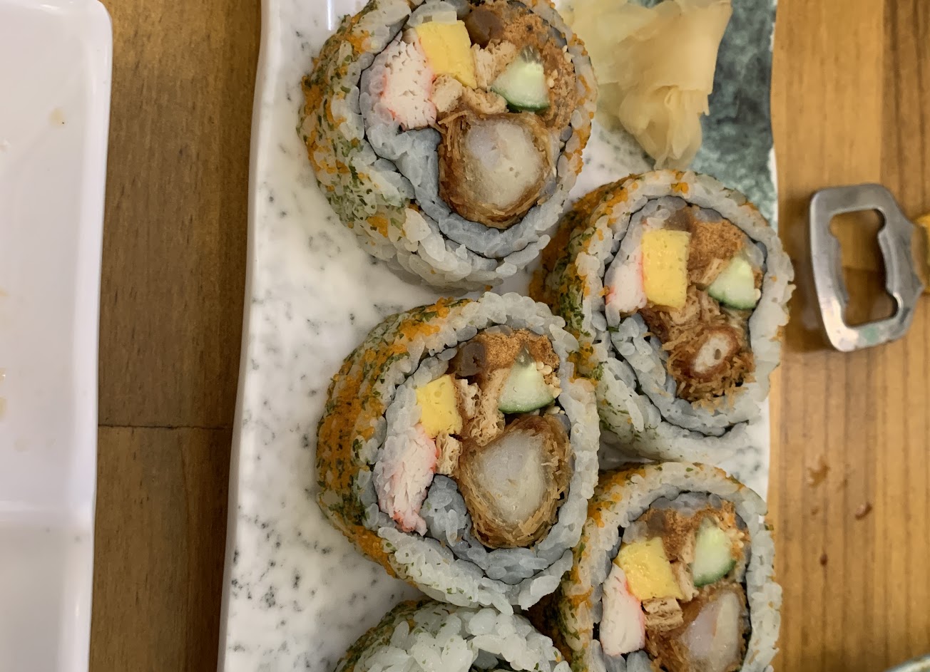 鮭魚卵手卷裡面是飯而不是菜,希望能改善。