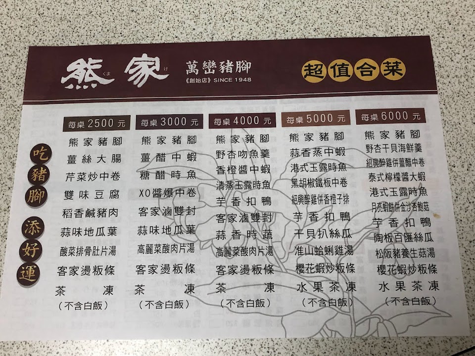 2024最新在地推薦餐廳的菜單_熊家萬巒豬腳的菜單、圖片