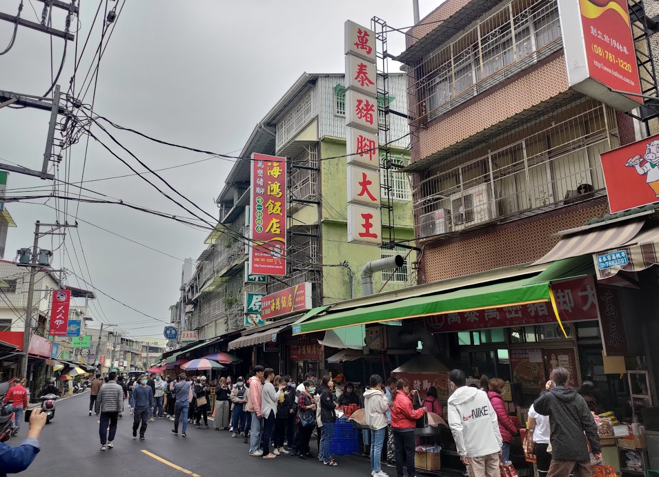 萬巒豬腳街四年一次的閏二月,想買豬腳的人若假日去近早去排隊,不然會撲空喔!那個人潮……!。(註)只有閏二月才會大排長龍。